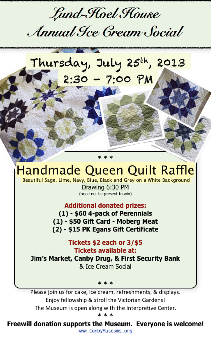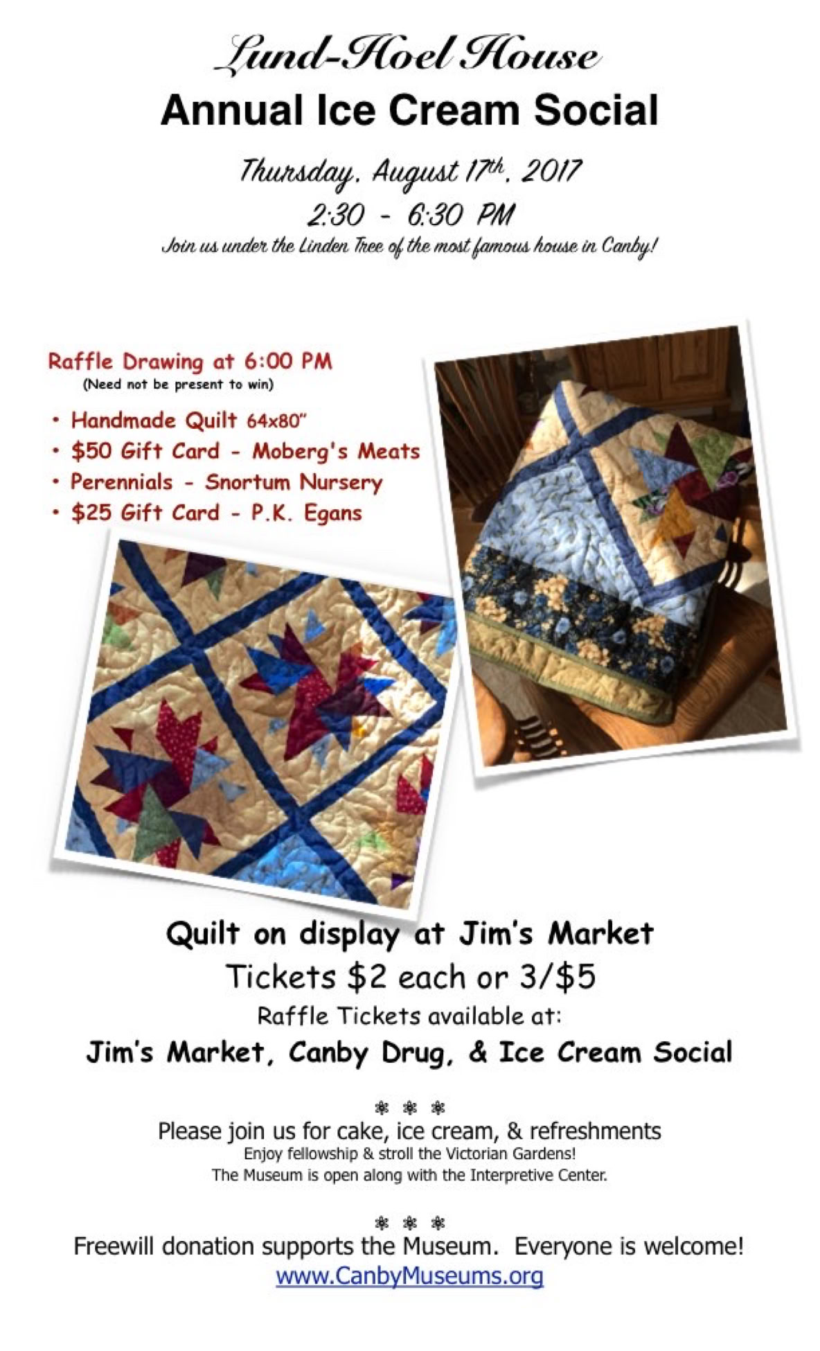 Additional prizes by Moberg Meat Center (original office of John Lund), 2 PK Egans gift certificates, Canby Drug & Gift, and Canby Theater.