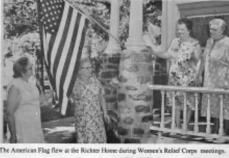 The American flag always flew at the Richter Home on the second Tuesday of each month when the Women's Relief corps met at the house. This group functioned in Canby for over 50 years. It was formed to send aid to the soldiers who were serving during WWII. When the average age of the members was over 80 years old, the group was disbanded at a special meeting held at the house in 1974.